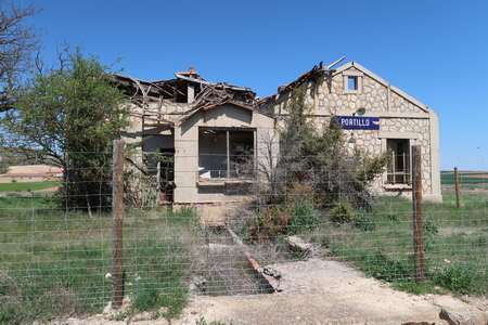 Rastplatz bei Cabrejas del Campo. Und weiter in der einsamen Landschaft passiert man die Ruinen der Bahnhofsgebäude von Cabrejas.