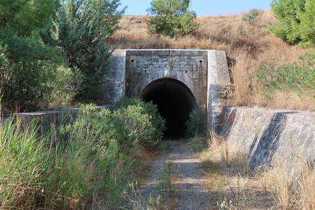 Der einzige Tunnel der Strecke taucht auf: Túnel de Las Tablas, 300m lang). Wie es scheint, ist er bald zugewachsen.
