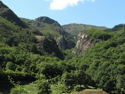 Nach dem Abzweig nördlich von Caranga de Abajo geht es zunächst leicht aufwärts durch den Wald. Bei P.K.11 befand sich die erste Kilometrierung des Abschnitts.