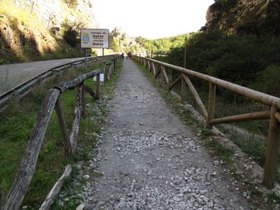 Das Ende der Schlucht ist schon in Sichtweite. Hier ist die Trasse wohl nicht mehr erhalten, ein schottriger Radweg folgt der Straße zum Stausee - evtl. auf die Straße ausweichen.