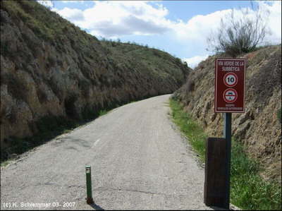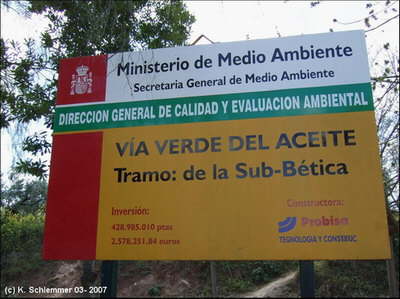 "Camino Natural Vía Verde del Aceite".Die Kilometrierung beginnt unverständlicherweise auch wieder von vorne!