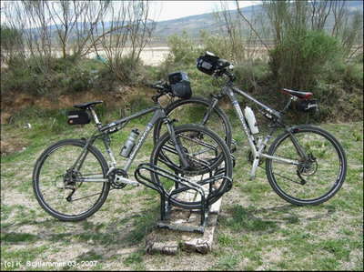 Dafür gibt es Fahrradständer: An der Laguna del Salobral, kein Wasser mehr nach langer Trockenheit.