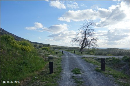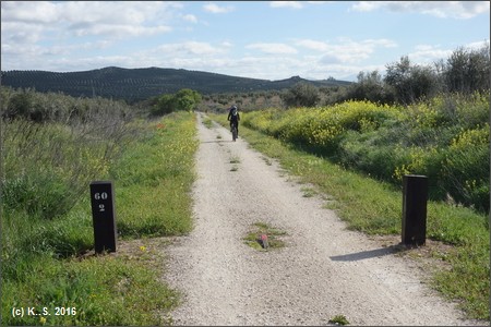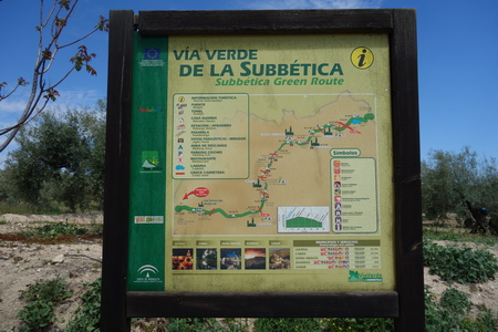 Die Wegweiser und die Infotafeln erklären die Anbindung an die Stadt Puente Genil, 6 km über Nebenstraßen und Feldwege. Diese Strecke sind wir (aus Zeitgründen) noch nicht gefahren.