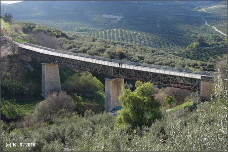 Über das Eisenviadukt geht es weiter bergauf zum 2. Scheitelpunkt der Strecke bei dem Ort Doña Mencía.