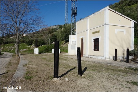 Ab Luque wird die Strecke flacher, die Berge rücken näher heran. An der Straßenkreuzung vor Zuheros ein gut erhaltenes Bahnwärterhäuschen (priv. Museum).