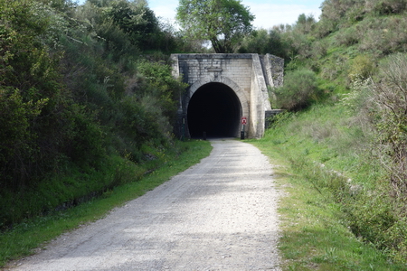 Vor uns erscheint der 3. und letzte Tunnel der Vía Verde del Aceite: nur 139 m lang mit einer leichten Krümmung, ohne Beleuchtung!