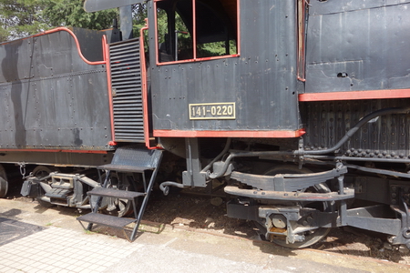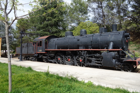 Der Bahnhof ist ein Eisenbahnmuseum: Eine mächtige MIKADO steht auf dem Bahnsteig. Diese Lok fuhr nicht auf der Olivenölstrecke.