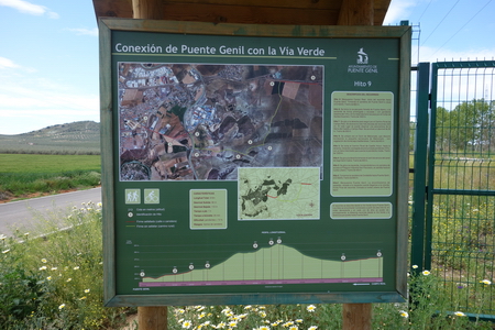 Da der gesamte Abschnitt des Radwegs auf der alten Trasse verläuft, sind keine starken Steigungen oder Gefälle zu erwarten. Der Scheitelpunkt liegt bei dem Ort Doña Mencía (618 m üNN) bei Kilometer 75, der Endpunkt des Radwegs auf der Trasse liegt am Informationspunkt bei den Ruinen des Bahnhofs Campo Real bei Kilometer 119 (260 m üNN). Von dort aus kann man über Nebenstraßen und Feldwege die Stadt Puente Genil erreichen, allerdings muss man auf der 6 km langen Strecke einen Anstieg von 56 Höhenmetern und eine Abfahrt von 110 Höhenmetern bewältigen (Steigung bis 10%, Näheres siehe unten).