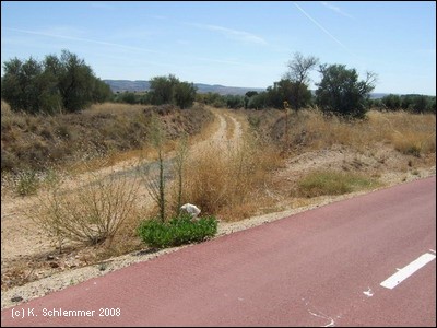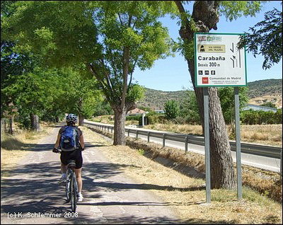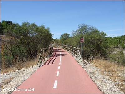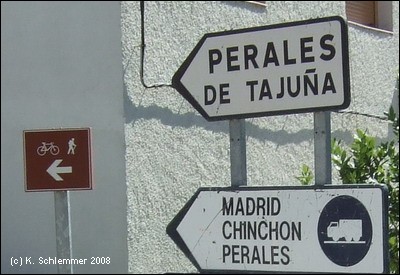 Etwas "wellig" ist die Strecke bis nach Perales. Dort verzweigt sich die Vía Verde: Beschildert ist der "Tramo Rural" südlich des Flusses, man kann aber auch der Straße nach Tielmes folgen.