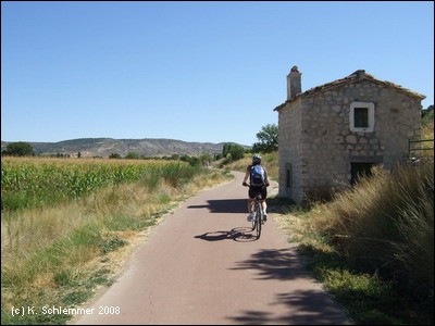 An verlassenen Ruinen vorbei und durch den Wald bei Ambite - ein gut gepflegter Radweg!