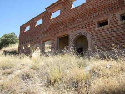 Weiter abwärts auf der neu asphaltierten Strecke (2008) und vorbei an der Ruine eines alten Hauses.