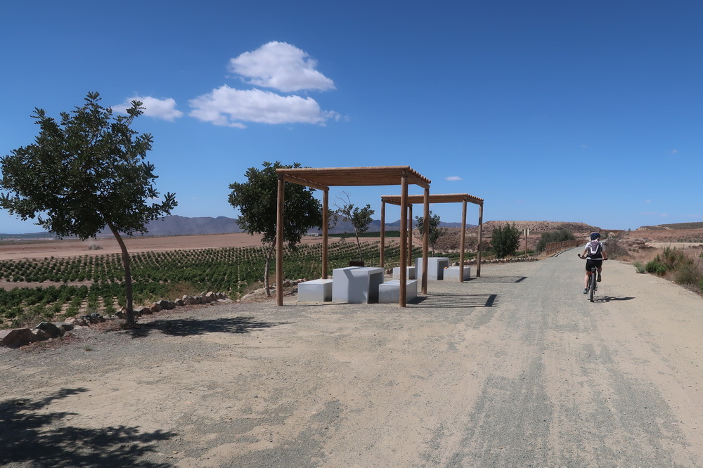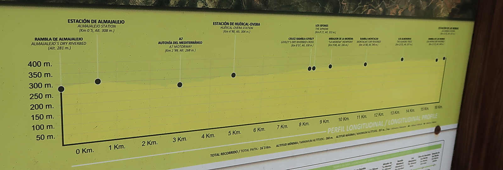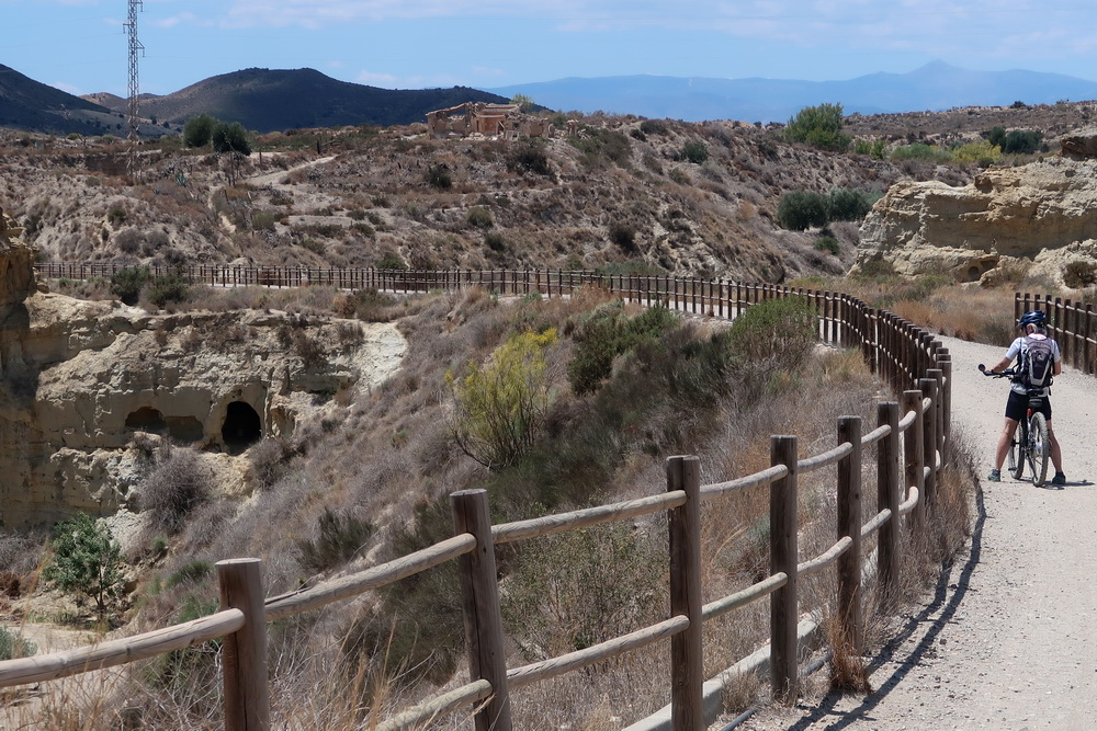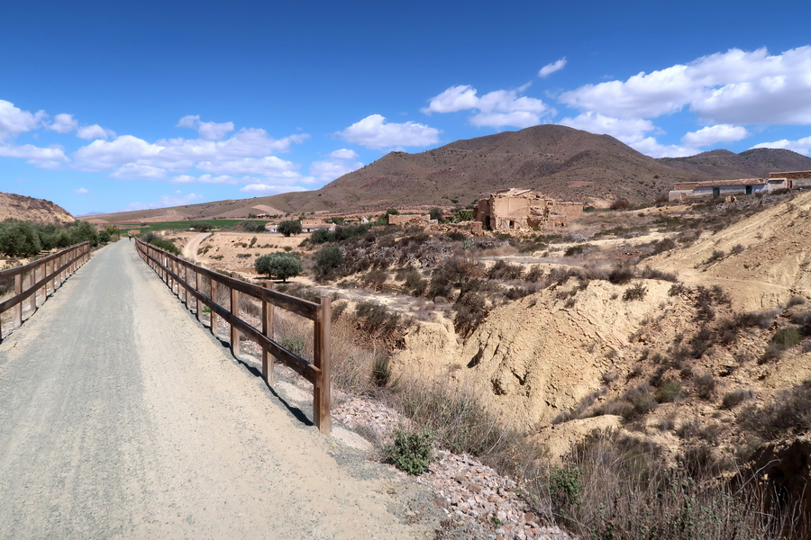 Dieser Radweg gehört zur Via Verde del Valle del Almanzora: Baúl - Arboleas (101 km). Leider fehlt noch die Verbindung von ca. 18 km Länge zwischen Huercal-Overa und Arboleas. Wir beginnen deshalb die Fahrt im Ort Almendricos und fahren Richtung Westen, da das Ende der jetzigen Via Verde an einem Zaun oberhalb der Autobahn endet (Hier soll bald ein Steg gebaut werden). Wenn die Lücke von ca. 11 km geschlossen ist, kann man die gesamte Strecke bis nach Baza und Baúl befahren (etwa136 km).