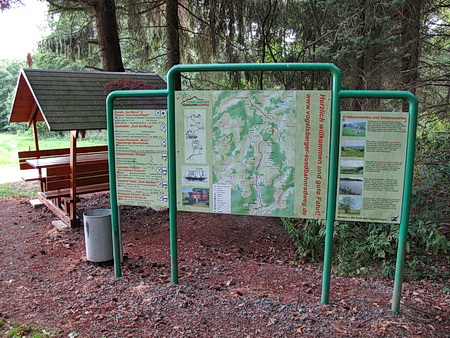In einer Zick-Zack-Fahrt durch die Heidelandschaft. 2,2 km vor Radmühl gibt es wieder einen Rastplatz mit Schutzdach. Die Strecke biegt links ab.