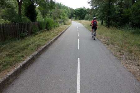 In einer Schleife führt der Radweg auf der Bahntrasse um die Hügel von Caveirac herum ....