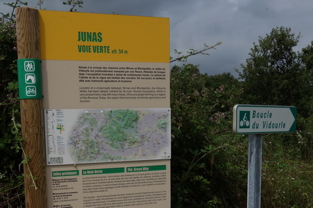 Der Bahnhof der stillgelegten Strecke nach Nîmes liegt etwas außerhalb des Kernstadt, hier befindet sich ein großer Parkplatz für die Besucher. Von hier aus führt die asphaltierte Strecke auf der ehemaligen Bahntrasse durch die südliche Landschaft in westlicher Richtung bis nach Caveirac, einem verschlafenen Ort ca. 9 km von der Großstadt Nîmes entfernt. Die frühere Bahnlinie führte weiter bis nach St. Césaire-les-Nimes (ca. 6 km), das inzwischen ein Stadtteil von Nîmes ist.