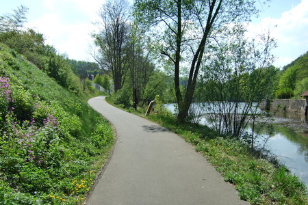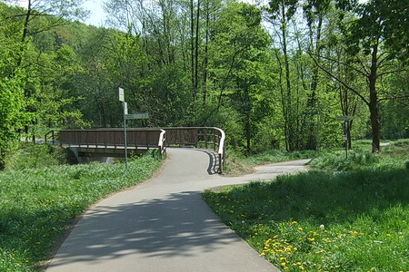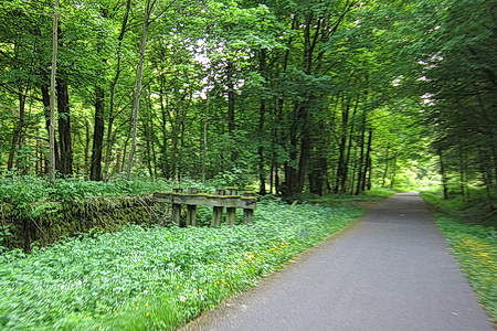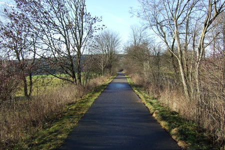 An der Halbsperre beginnt wieder der Radweg auf der Trasse, es geht Richtung Hirzenhain.