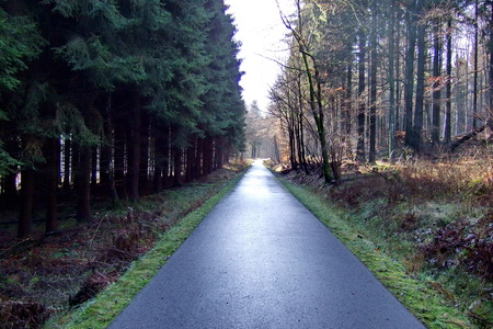 In Hartmannshain, in 565 m über dem Meeresspiegel, beginnt eine lange und stetige Abfahrt. Als nächstes muss die B 275 überquert werden. Die Umfahrungsspuren der eng stehenden Sperren sollten zu Denken geben.