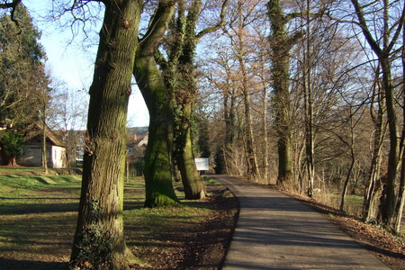 Durch den Schlosspark, vorbei an den alten Bäumen, vorbei am ehemaligen Bahnhofsgelände, dann muss wieder die B 275 überquert werden.
