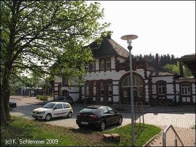 Am Wegesrand vor dem Ortseingang informiert noch einmal eine Tafel über die Geschichte der Bahnstrecke. Dann erreicht man den aktuellen Bahnhof.