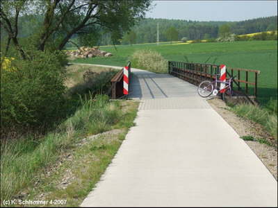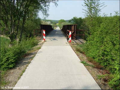 Im Sommer 2008 wurde der letzte Abschnitt über die "Bimmelbrücke" als Radweg ausgebaut.