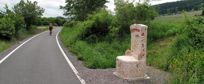 Am Rande des Radwegs in Langewiesen findender Radler auch eine Sitzgelegenheit abseits des Fahrradsattels.