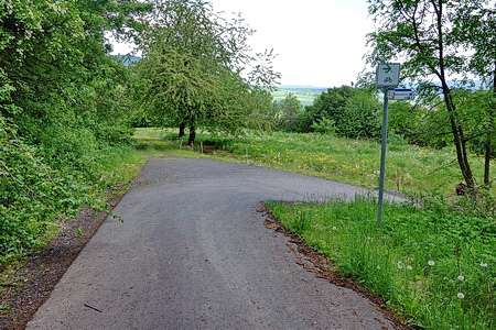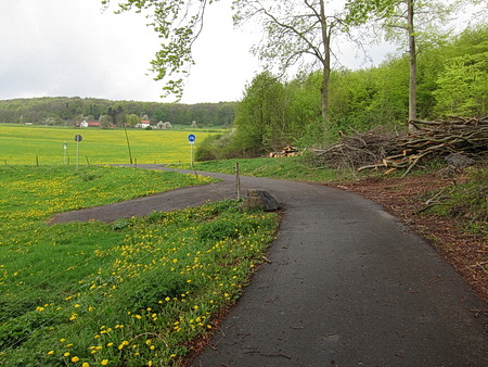 Der Bahntrassenabschnitt endet hier in Oechsen. Der Radweg aber führt weiter am Ortsrand entlang und hinauf Richtung Lenders und zur Emberghütte.