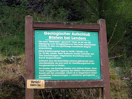 Der Weg führt direkt am geologischen Aufschluss Bilstein vorbei, dem Rest eines vulkanischen Schlotes mit den typischen Basaltsäulen.
