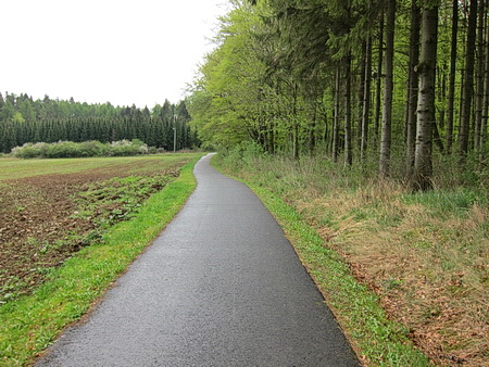 Nun beginnt der eigentliche Radweg. Durch den Wald hinauf Richtung Bermbach.