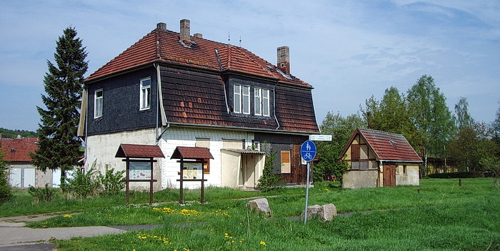 Auf der Bahnhofsstraße entlang am Bahndamm, nur 350 m entfernt steht das Gebäude des alten Bahnhofs Oechsen, heute als Wohnhaus genutzt