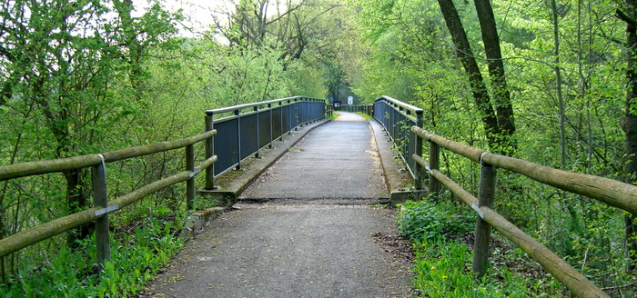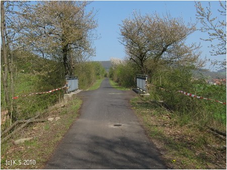 Die ehemalige Brücke über die Bahnstrecke bei Masbach wurde schon vor Jahren abgerissen und durch eine "Röhre" ersetzt. So erreicht man die Verladestation des alten Schotterwerks.