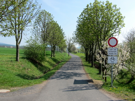 Es versteht sich, dass der Weg in Gegenrichtung entsprechend steil bergauf führt, was dazu führt, dass einige Radler lieber die Straße benutzen und den Autoverkehr in Kauf nehmen. Von Oberalba aus ist die Strecke dann in beiden Richtungen gut befahrbar. Man erreicht in Dermbach den neuen Feldatalradweg auf der ehemaligen Bahntrasse. Hiermit ist sowohl die Verbindung ins Werratal, als auch die Weiterfahrt Richtung Süden über die Berge der Rhön nach Bayern hergestellt.