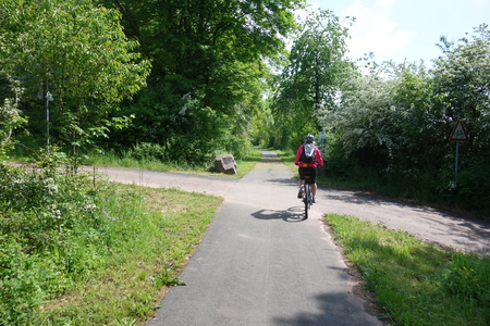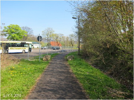 Vor dem Gelände des ehemaligen Güterbahnhofs endet der Ausbau auf der Trasse. Ab hier ist der Radweg zum Emberg beschildert.