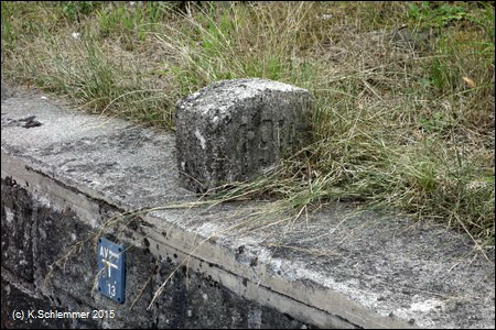 Hier, unter der Straßenbrücke der B140, befinden sich die Reste einer alten Römerbrücke. Es geht wieder auf die Bahntrasse.