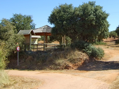Die M-222 zwischen Valdaracete und Brea de Tajo muss überquert werden. Auf der anderen Seite befindet sich wieder ein schöner Rastplatz mit Überdachung und Informationstafeln zur Region und dem Lehr- und Wanderweg (Senda Ecológica).