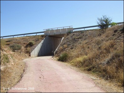 Vía Pecuaria: ein alter Viehtriebsweg. Bei Kilometer 9 quert eine Brücke (M-221)