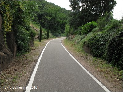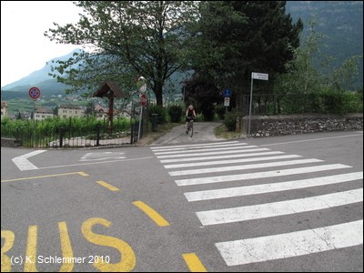 Es geht entlang der Straße zum alten Bahnhof von Eppan.