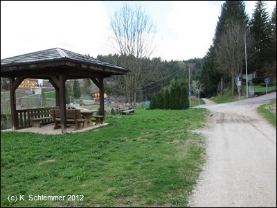 An einer Schutzhütte vorbei erreicht man den Waldrand.