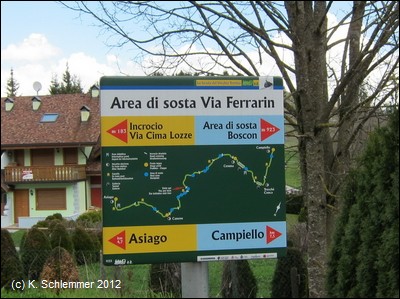 Der Radweg auf der Bahntrasse zwischen Asiago und Campiello (13 km) bietet einige Besonderheiten. Die stillgelegte Bahnstrecke verband Asiago mit Piovene Rocchette. Wegen der Höhendifferenz kam zwischen Cogollo und Campiello nur eine Zahnradunterstützung in Frage. Dieses steile Teilstück der ehemaligen Bahnstrecke ist leider nicht ausgebaut, aber dennoch teilweise befahrbar oder begehbar. Zwischen Cogollo und Piovene Rocchette musste die Bahn den Astico Fluss überqueren, ein mächtiges Stahlviadukt überspannte die Schlucht. Dieses Meisterwerk der Ingenieurskunst wurde leider zerstört, der nachfolgende Tunnel gesperrt. Dem Radler bleibt zum Glück die Strecke Asiago - Campiello, eine abwechslungsreiche Strecke mit zwei Tunneln in der eigenwilligen Landschaft in rund 1000 m über dem Meer.