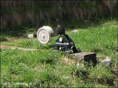 Ehemaliges Casello No. 7 , leer und verlassen. Am Ortsrand von Cesuna beginnt der Asphalt. Ein Eisenbahnfan hat ein paar Relikte gesammelt, wie z.B. diese alte Stellvorrichtung.