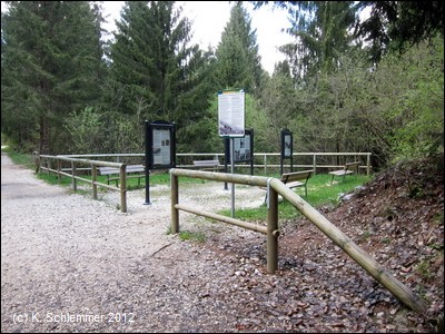 Das Westportal des Tunnels ist nur grob aus dem Fels gehauen. Gleich hinter dem Tunnel erreicht man einen Rastplatz mit Infotafeln.