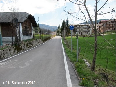 Der Radweg führt am östlichen Ortsrand vorbei (Via Pozette).