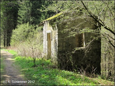 Weiter durch die einsame Waldlandschaft, dann taucht ein Häuschen auf.