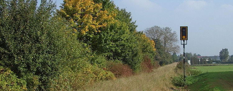 Völlig eben erscheint die Strecke weiter Richtung Ziegenhain. Nur dort, wo sich eine kleine Flutbrücke befand durchquert man nun eine Senke.