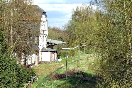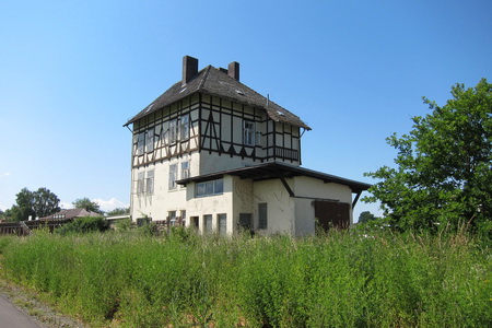 Schon bald biegt die Route ab durch die Felder. Die stillgelegte Bahntrasse wird sichtbar, eine Unterführung in Heddersdorf und das auffällige Bahnhofsgebäude von Frielingen, das wie ein halber Bahnhof erscheint. In Wahlshausen beginnt der Radweg auf der Trasse.