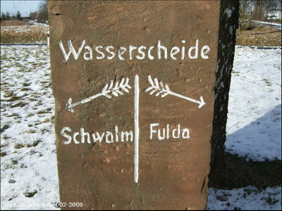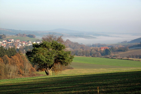 Hier überquert man die Wasserscheide von Fulda und Schwalm. Das Tal Richtung Osten liegt im Nebel.