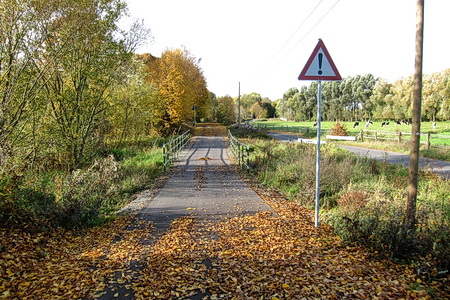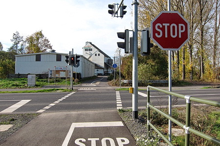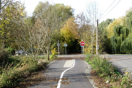 Die Kreuzung mit der Kreisstraße 111 wurde in schon bekannter Weise ohne Sperren gestaltet, an Geländern hat man auch hier nicht gespart.