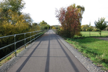 Im Fuldatal verläuft die Strecke völlig eben, ab Niederaula geht es fast unmerklich bergauf, mit einigen lokalen "Buckeln", da ja der Radweg noch nicht auf der Bahntrasse verläuft, sondern auf einem Wirtschaftsweg meist direkt neben der Bahntrasse.