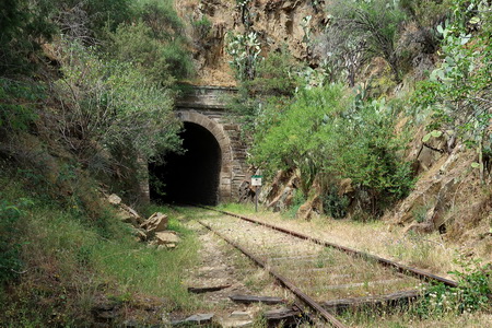 Oberhab der Trasse stehen die alten Wasserbehälter für die Dampfloks. Der erste Tunnel (La Carretera ) taucht vor uns auf.