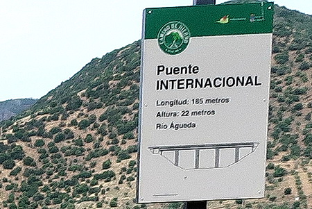 Eine 11 m lange Brücke, Puente El Embarcadero, wird überquert, dann beginnt die Puente Internacional zwischen Spanien und Portugal.
