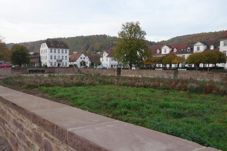 Das Hafenbecken des Landgraf-Carl-Kanals. Im Jahr 2014 wegen Sanierungsarbeiten leider immer noch leer. Auch 2020 sind die Bauarbeiten am Hafenbecken noch nicht abgeschlossen.